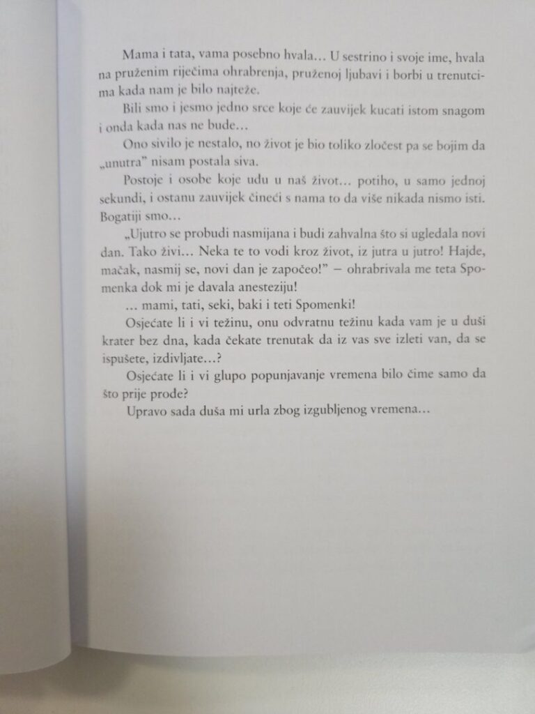 Bojana nam je svima dala dirljive savjete i još bolji primjer kako iz crnila izgubljenoga djetinjstva izrasta iznimna snaga, oprost, optimizam i vjera u bolju budućnost.