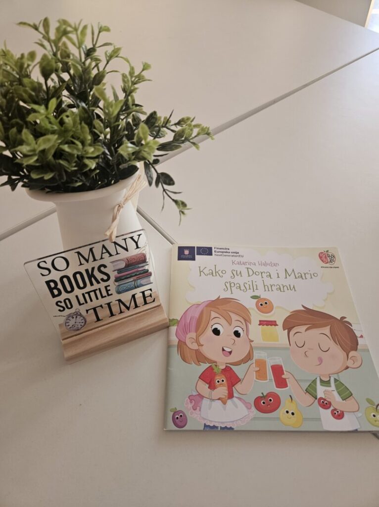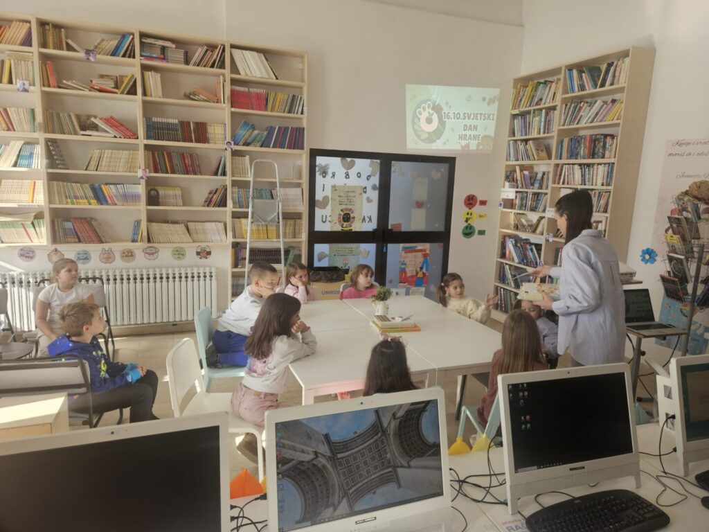 Naši mali prvašići na Svjetski dan hrane, 16. listopada 2025. posjetili su školsku knjižnicu i slušali avanture Dore i Marija.