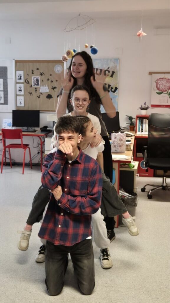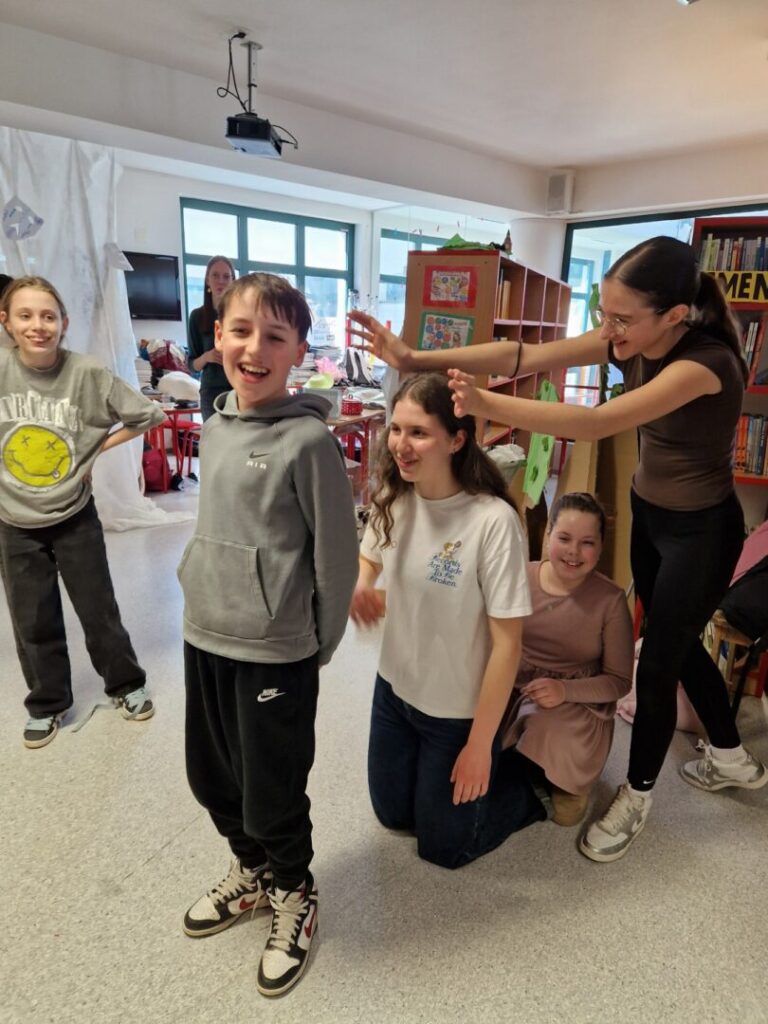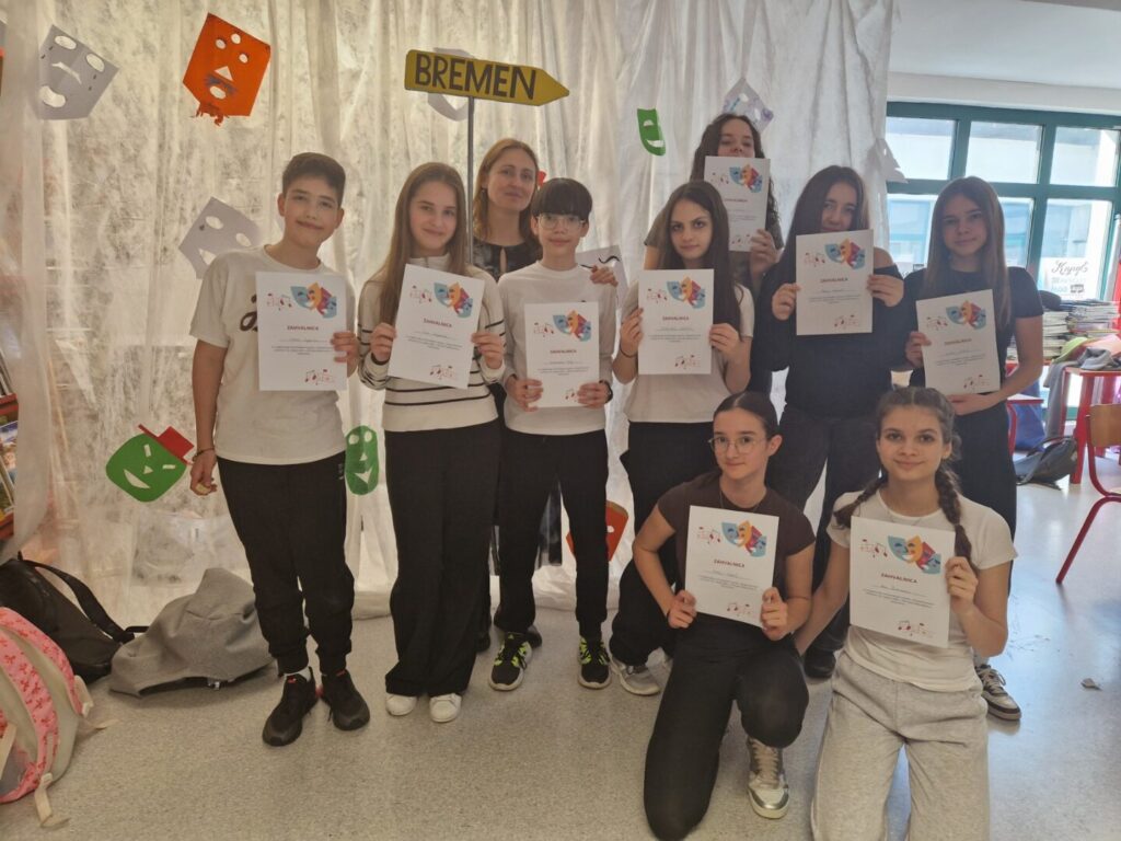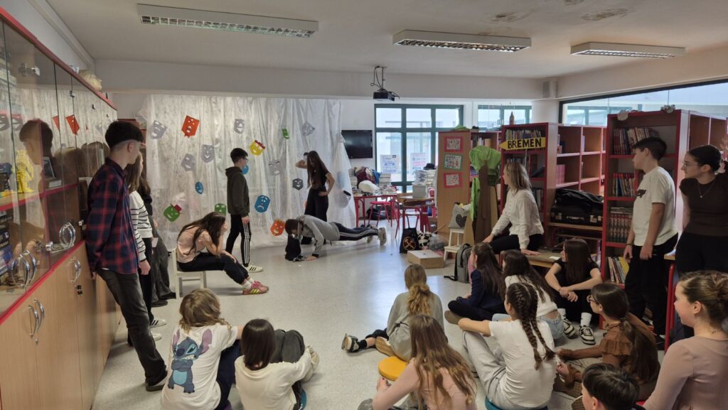 Dramskom radionicom želimo unaprijediti govorne, izražajne i scenske sposobnosti učenika kroz dramski izričaj. Učenici su dobili priliku za primjenu njemačkog jezika u stvarnoj komunikacijskoj situaciji kroz izvođenje zajedničkih dramskih aktivnosti, poput improvizacijskih vježbi te osmišljavanja kratkih skečeva na zadanu temu. Na ovakav način učenici uče kroz praksu, pokret i interakciju, što pridonosi trajnosti stečenog znanja.