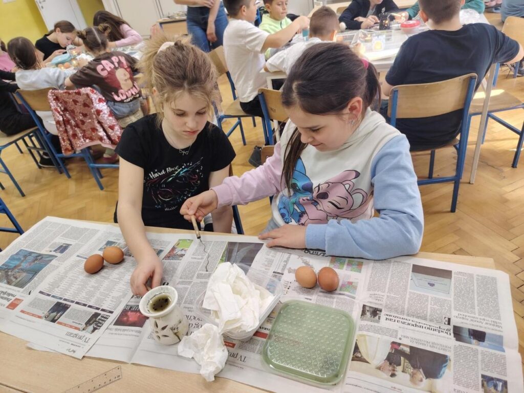 Učenici produženog boravka drugog i četvrtog razreda sudjelovali su u radionici ukrašavanja jaja voskom.