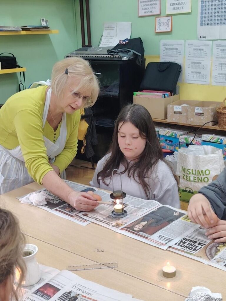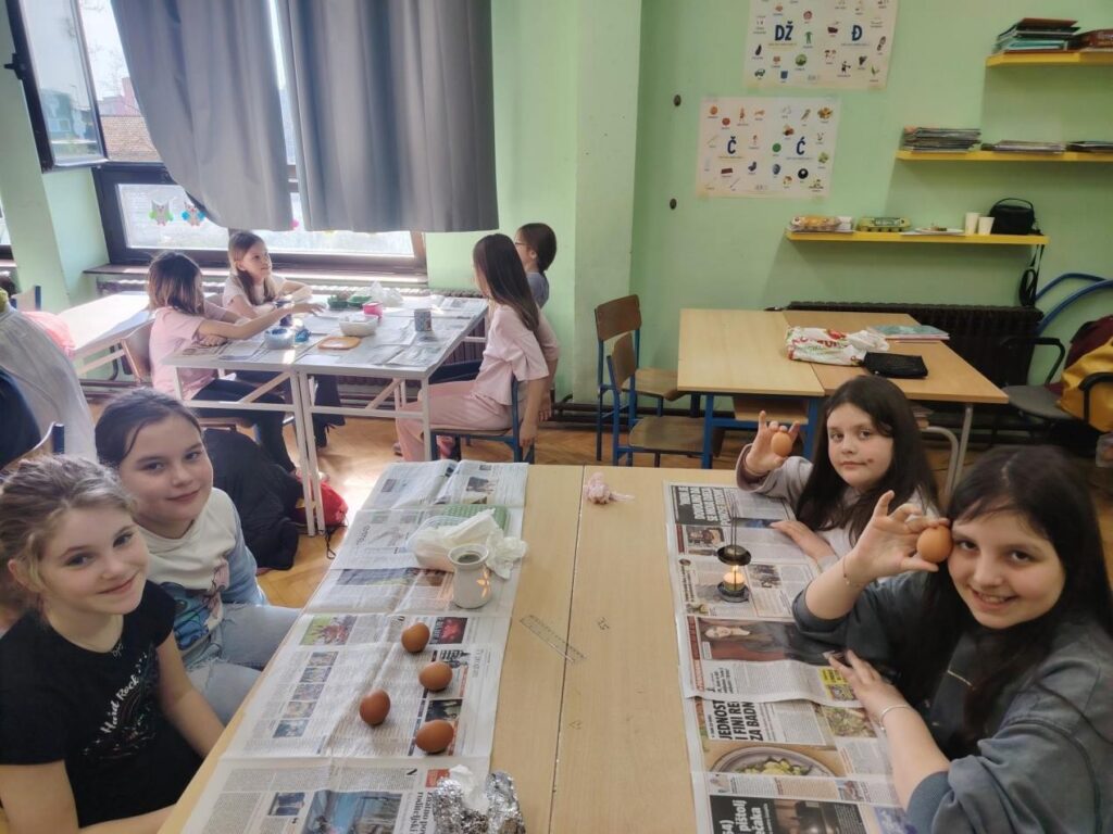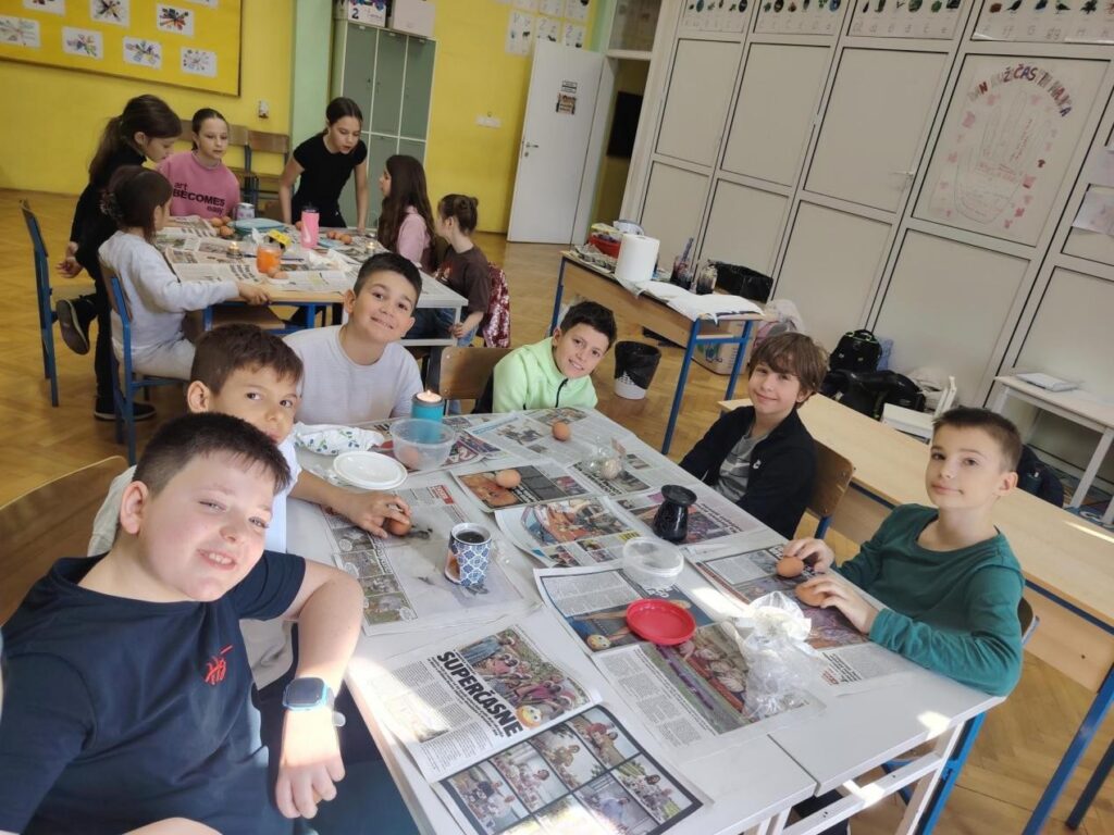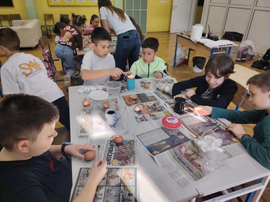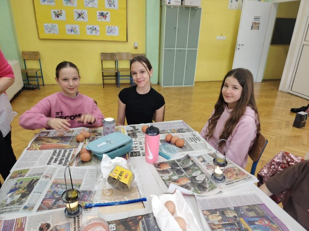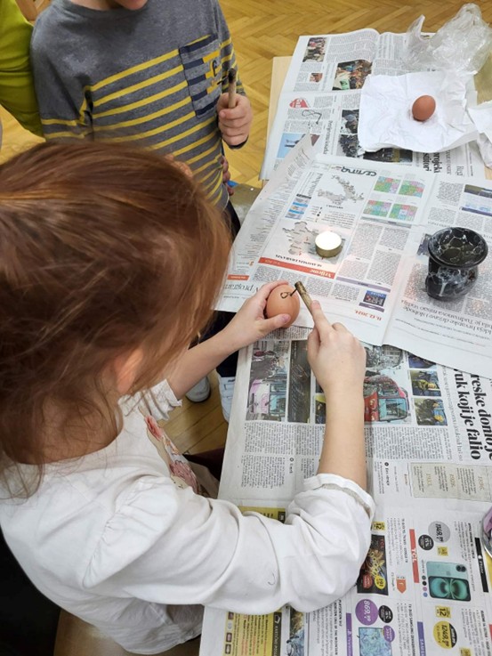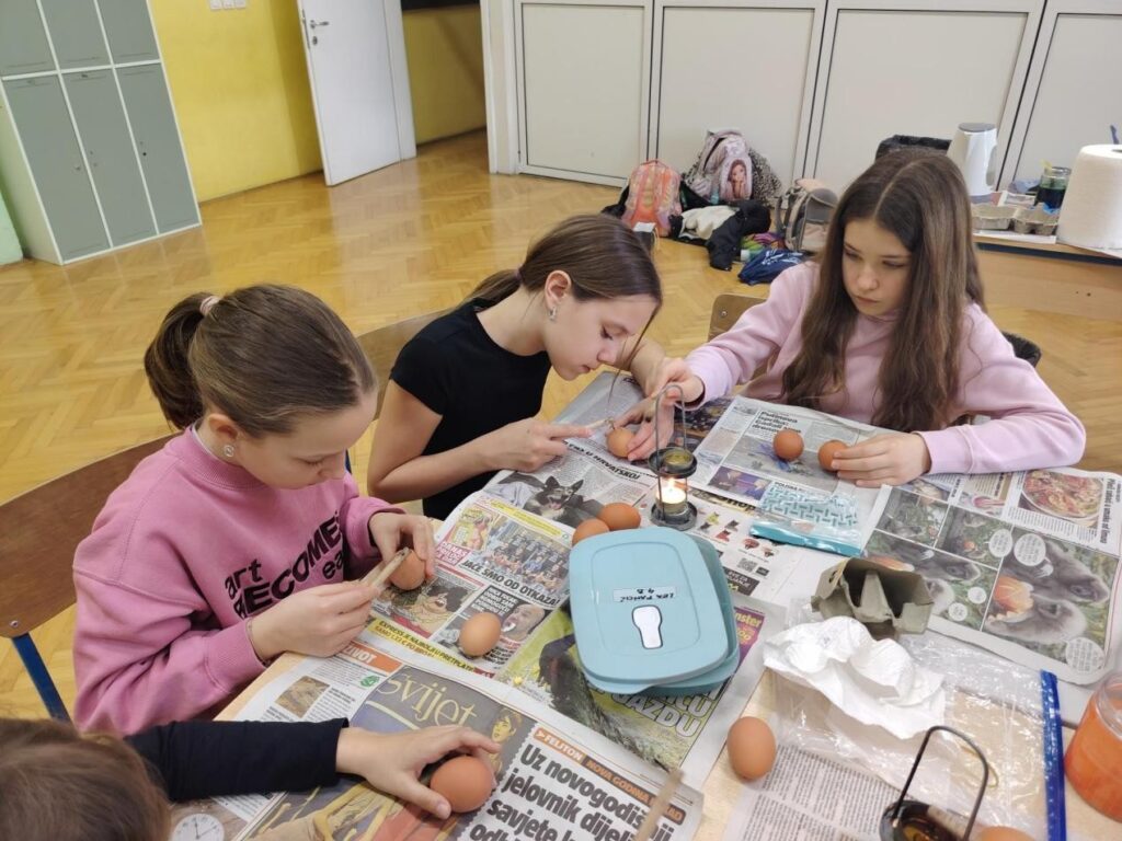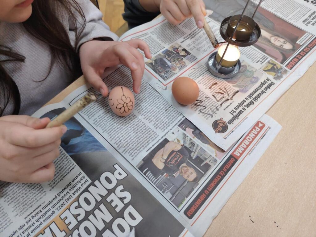Nakon toga započeli su s ukrašavanjem jaja vrućim voskom, na koja su crtali različite likovne simbole, ali i pisali svoja imena.