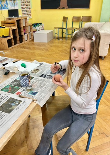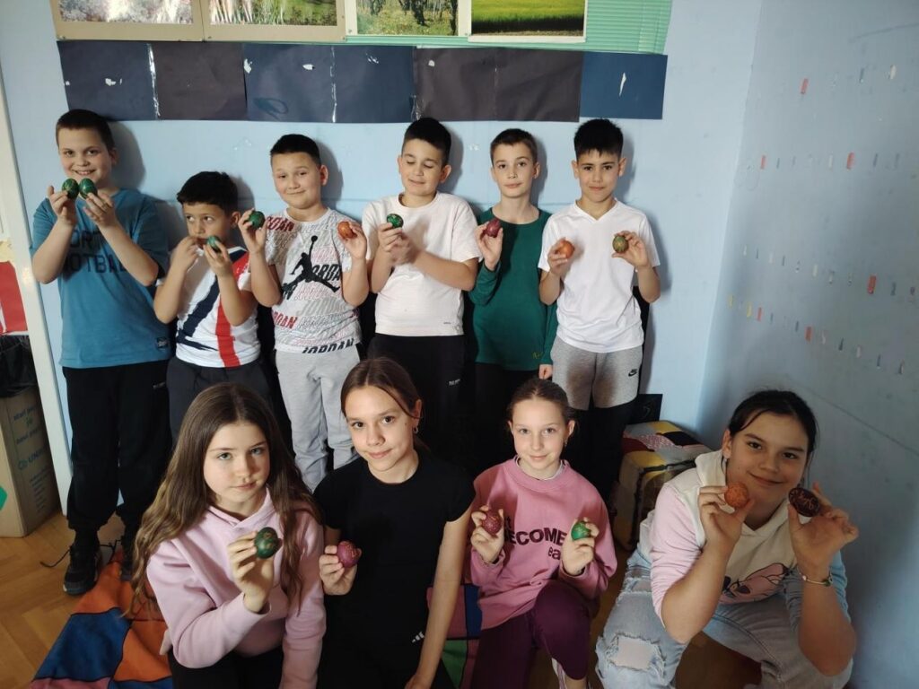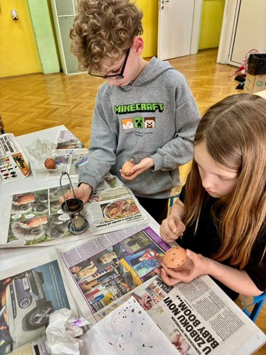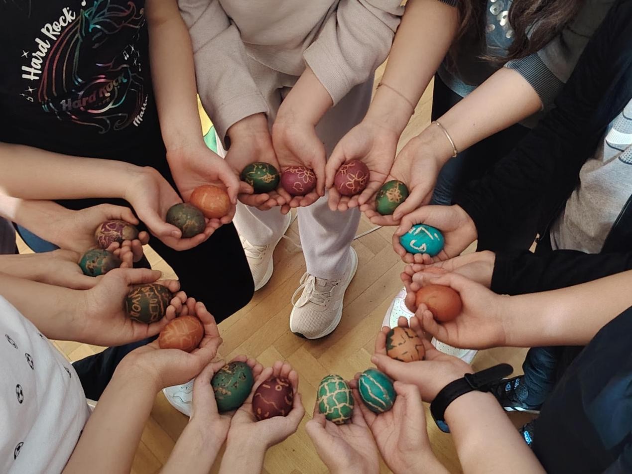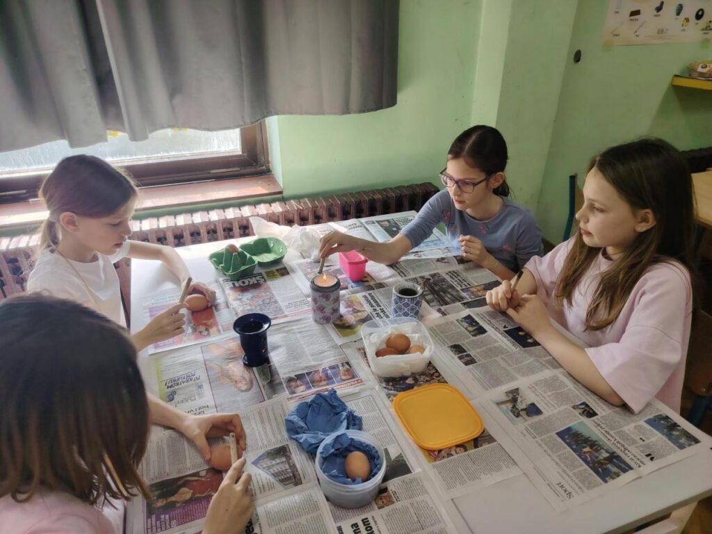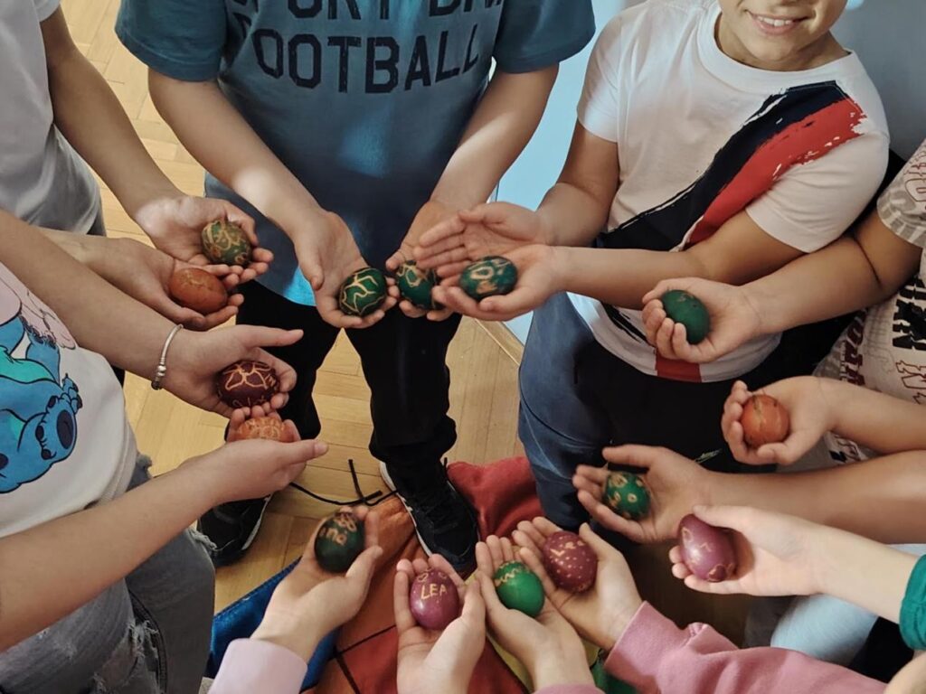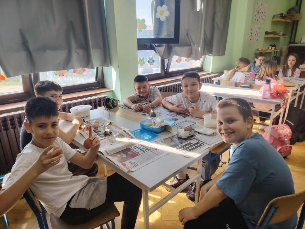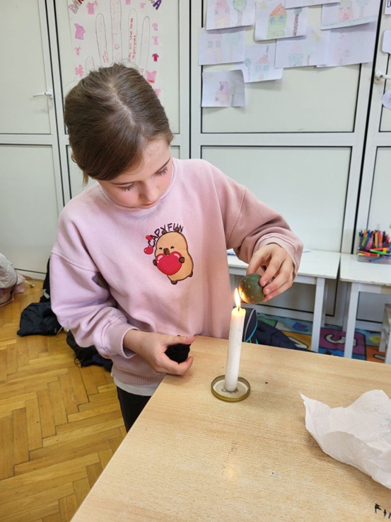 Nakon toga započeli su s ukrašavanjem jaja vrućim voskom, na koja su crtali različite likovne simbole, ali i pisali svoja imena.