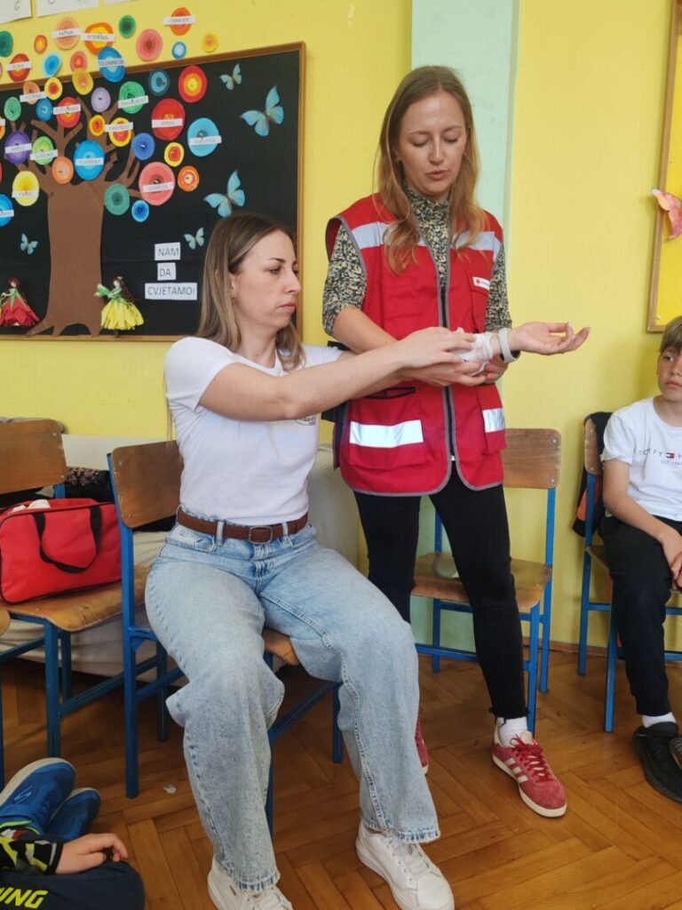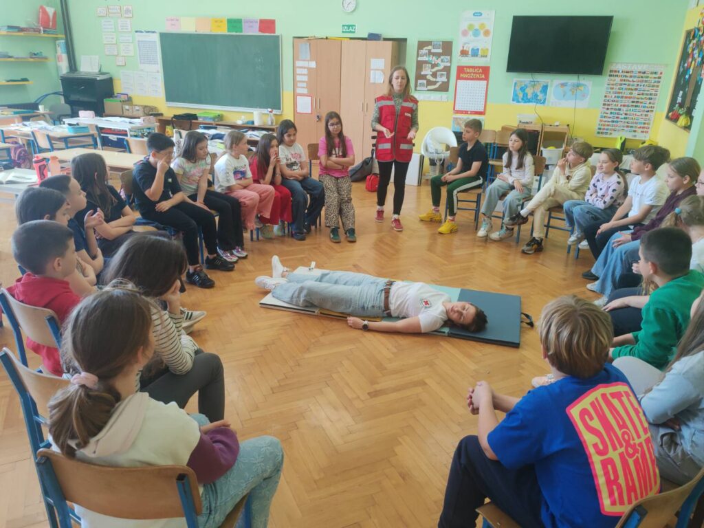 Učenici trećih razreda produženog boravka sudjelovali su u edukativnoj radionici prve pomoći koju su održali djelatnici Hrvatskog Crvenog križa.